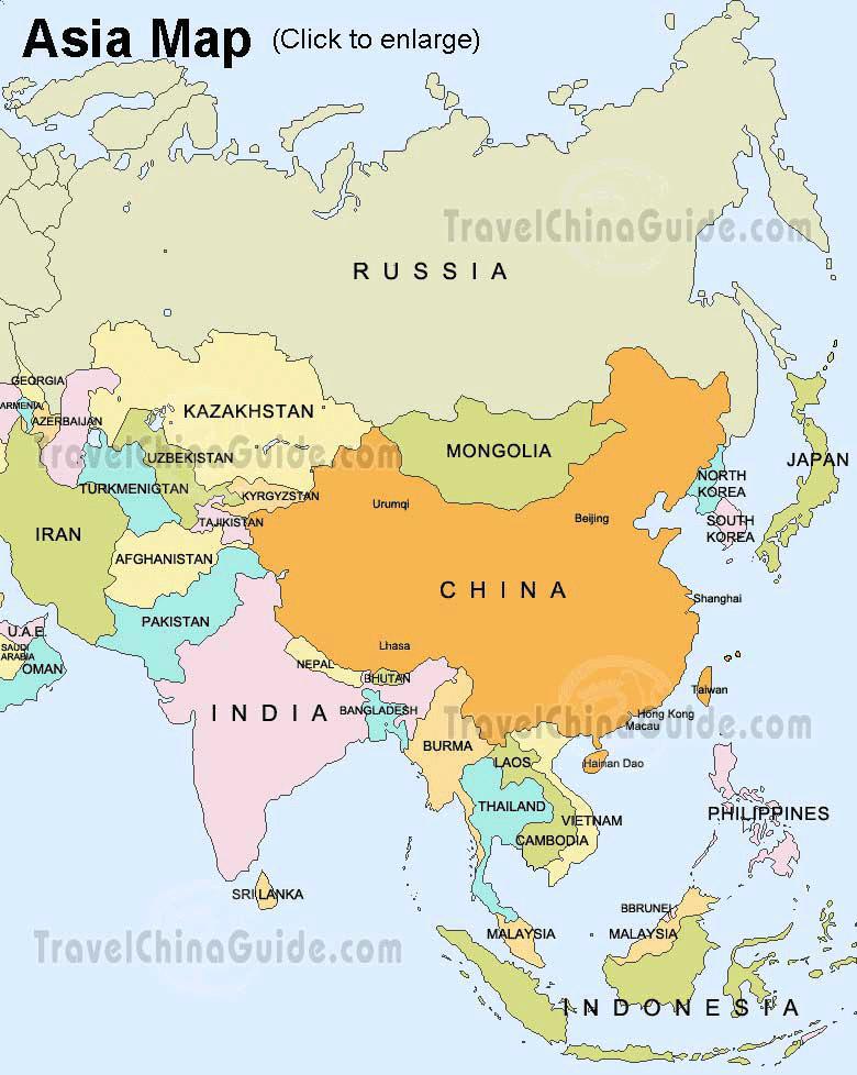 Карта России и Азии